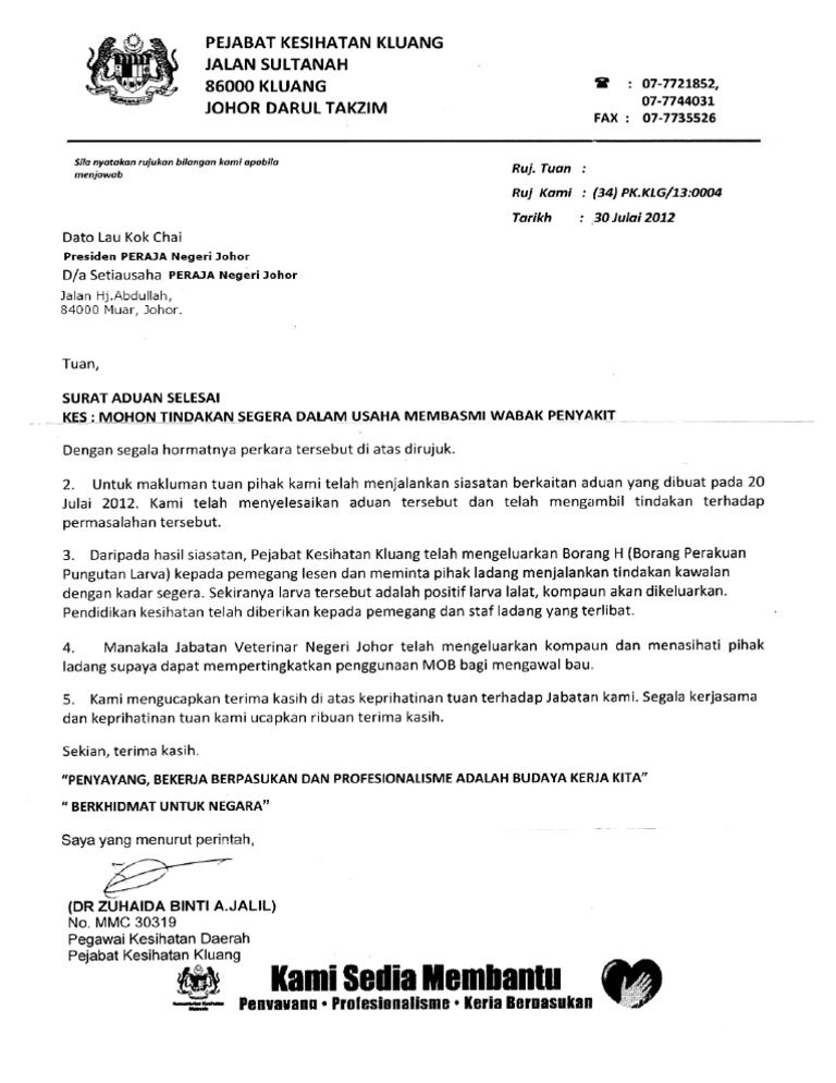 Contoh Surat Makluman Jabatan Kesihatan